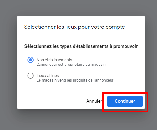 Type de compte Google My Business